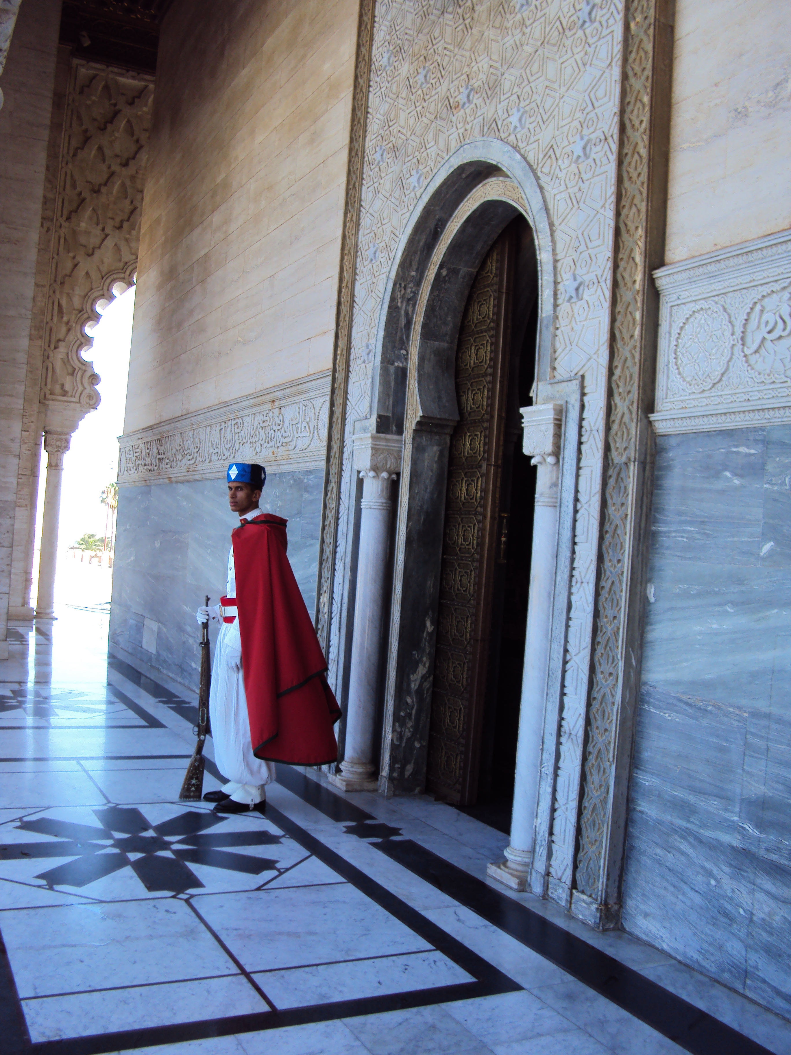 GibraltarArriving in Tangier, I stayed in the Medina area of Tangier, not far from the ferry. The hotel turned out to be really old, but so ornate! I could get lost in the hallways and terraces just looking at the intricate mosaics and fountains. I visited the Kasbah (can’t get that song out of my head) and the Grand Mosque. I took a train down to Rabat, and spent hours in their medina and their kasbah, and visited the mausoleum of Mohamed VI. I also ate a chicken heart sandwich, quite by accident. I bought some leather goods at the medina, including some very cool goatskin and henna lamps.