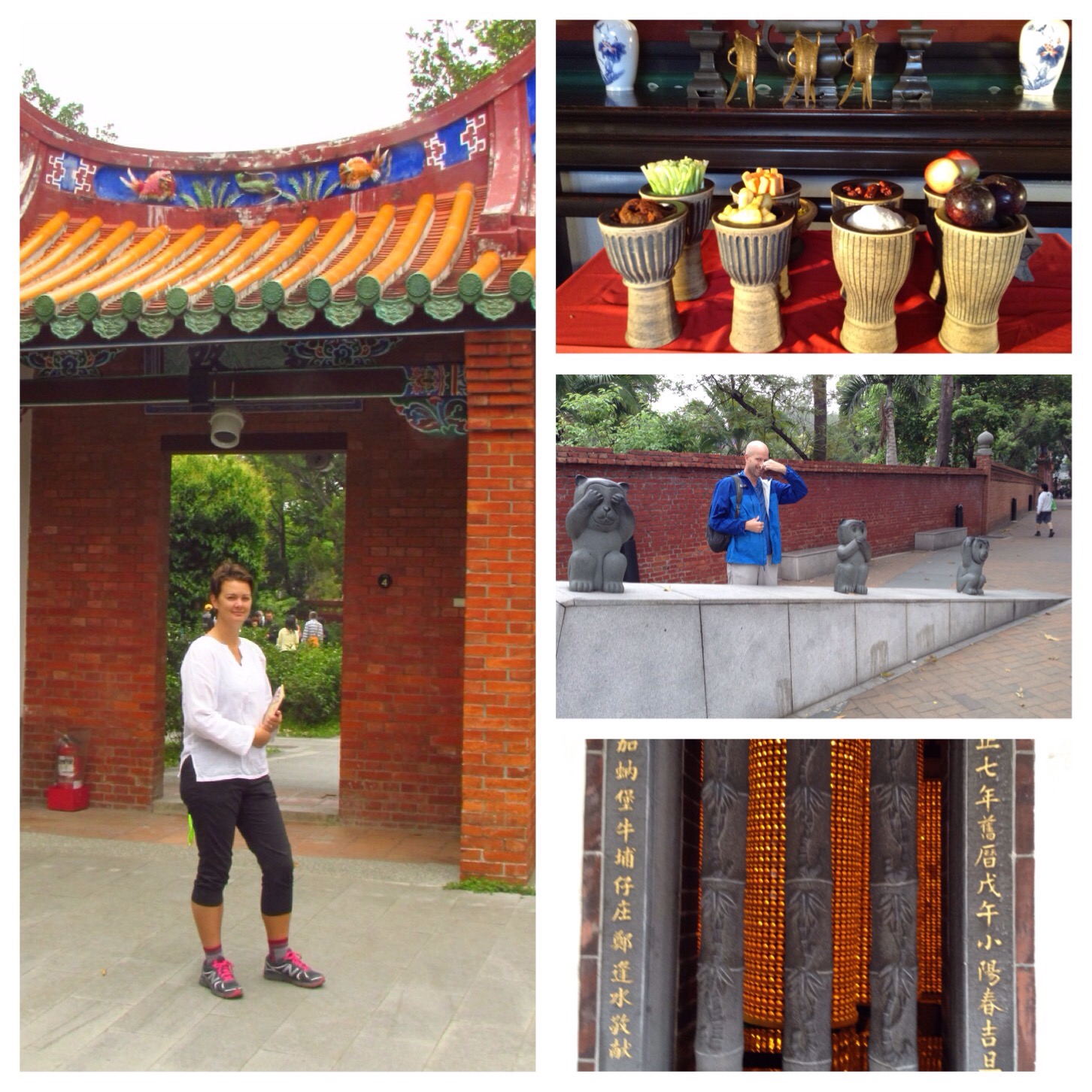 We started off with two full days in Taipei. We visited the Longshan Temple, the Confucious Temple, and the Baoan Temple. Relaxing places to spend some time, and full of Chinese people praying, meditating, and asking for auspicious signs. We went to the National Palace Museum- 500,000 bronze, jade, writings, and paintings from all eras of China’s history- and the National Museum of Miniatures- dozens and dozens of models, miniatures, and dioramas. The Chiang Kai-Shek memorial is beautiful, a white and cobalt blue building set in a spacious plaza, and the Taipei 101 building is tall and stunning. Until 2009 it was the tallest building in the world. Meeting up with the son of a friend of mine, Zak and his friend Kate took us on a hike up Elephant Mountain to see Taipei from above, and then to a night market to try some tasty street food such as grilled squid and a really yummy peanut- brittle and ice cream kind of burrito. Mm mm.