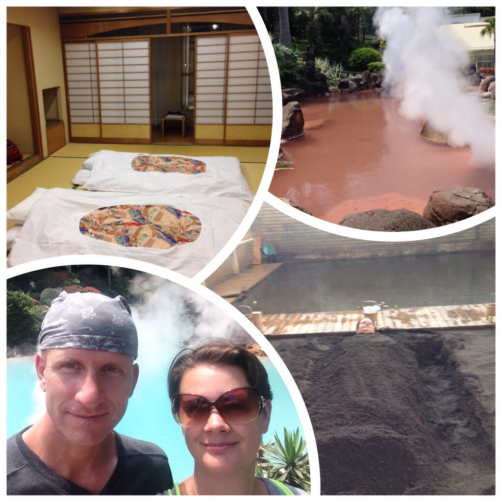 That was in Fukuoka, on the island of Kyushu, (after a ferry ride from South Korea). We sampled the local ramen specialty, saw some old style shrines and temples, and visited a Mongolian Invasion museum and a robot museum (opposite ends of the spectrum!). And then we took a train to Nagasaki, to see two sites: the “Battleship Island”, an old coal mine island that has been abandoned since 1974 (and is the evil lair in 007 Skyfall), and the Nagasaki Peace Park, ground zero for the atomic bomb. What a moving place, especially with the tens of thousands of folded origami cranes, homage to a young girl named Sadako who died after the bombings. From there, we went to Beppu, a hot springs town, to visit the seven different “hells”, or hot springs, as well as get buried in volcanic sand and stay at a traditional ryokan (Japanese style room with futons and tatami mats).