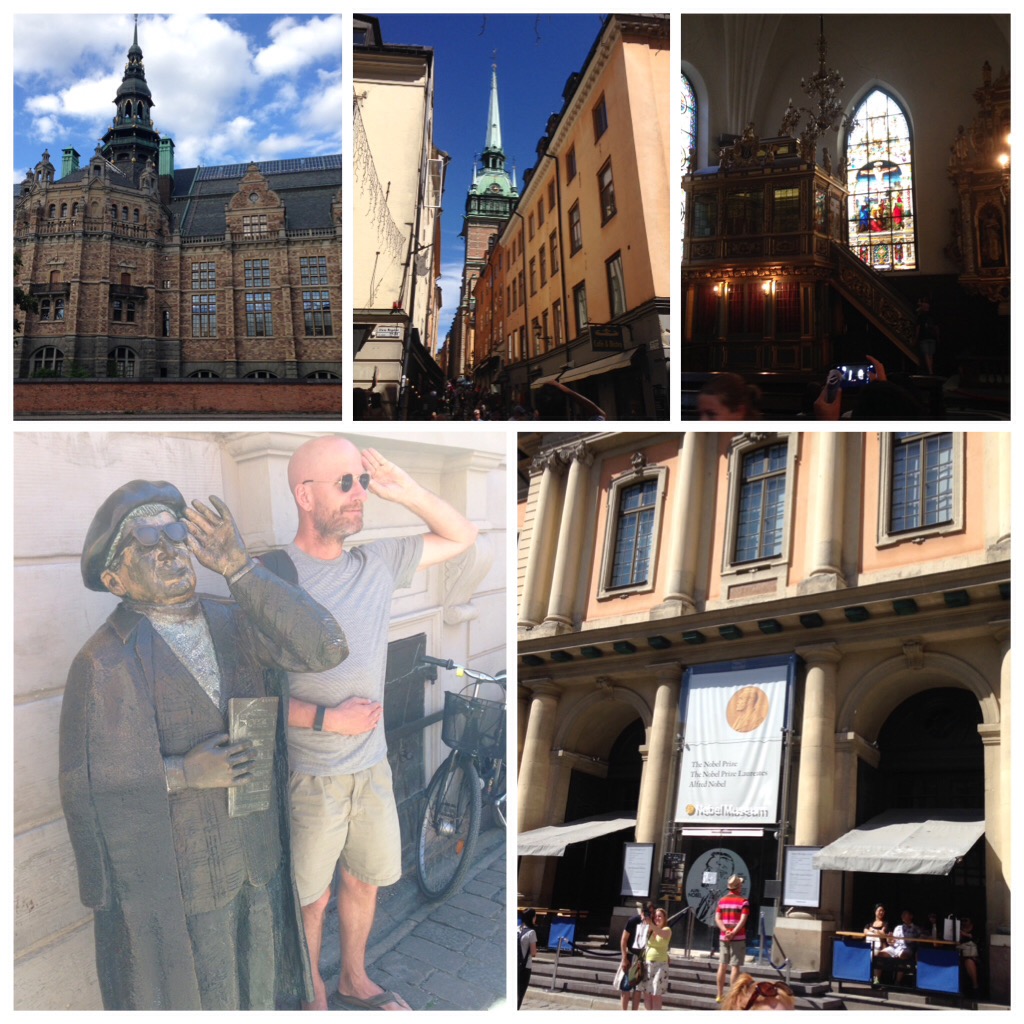 The next morning we met Mark and Nicole at their hotel for a fabulous breakfast, and then we went on a walking tour of Gamla Stan, visiting such sites as the smallest statue (10 cm), the narrowest alley (90 cm), and learning all about the history and culture of Stockholm. We visited the National Library, went by the Nobel Museum, and Storkyrkan, the cathedral. Another great dinner at the same restaurant (it was really good!), followed by ice cream on Belgian waffles, and then back to our boat for some more sundowners. Obviously, travel for all of us is just as much about the food and drinks as it is the history and the culture!