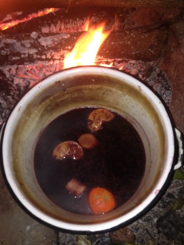 After lunch we checked in to our “Bunkie“, a small off-grid cabin owned by David and Rachel. We met the owner and he walked us through the amenities such as the propane heater, the bathroom, the fire ring, and our breakfast order. We said hello to the two goats and three cats. As dusk approached, we gathered some firewood and I prepared some mulled wine (thanks to FreshOffTheGrid for their recipe that came to my inbox last week!).