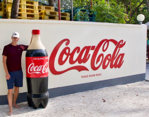 The next morning, we took a speedboat to Thulusdhoo, a medium-sized island in the Kaafu atoll. Less than 1400 Maldivians live on the island, which is only 2.8 sq km. We stayed in a small guesthouse which served a delicious breakfast each morning, and we tried out a different local restaurant each evening. Maldivian specialties include masuni (flatbread served with shredded tuna and shaved coconut flavored with limes and onion and spices), and roshi (a mixture of sauce, chopped up flatbread, and fish/chicken/ or beef cooked together). Also on the island is a Coca Cola factory- the only one in the world that uses desalinized water.