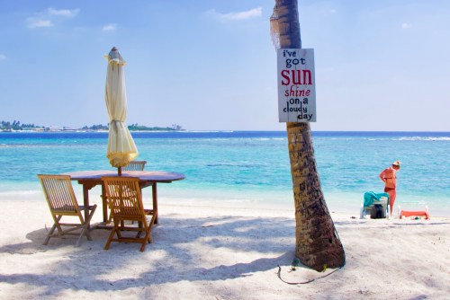 So if you want to see the Maldives, you better hurry! Since we were just in India for two months, we found that the budget airline Indigo has $116 fares to the Maldives, so we decided to visit. Visitors to the Maldives have three choices: a private island owned completely by a luxury resort, a local island populated by Maldivians with guest houses and small restaurants, or a live-aboard boat. We chose a local island.
