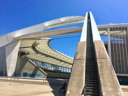 With sandy beaches to the north and south, Durban has a beautiful skyline that is dominated by a huge stadium, which you can take a “skywalk” up- Chris climbed to the top to get this great view. Make sure you have sneakers on that day- you’re not allowed do it in sandals. Later that day we had lunch on Florida Road, the posh area for finding Durban delights such as “bunny chow”, a must-eat while in the area, featuring curry poured over bread, which was made popular by Indian workers who came to South Africa for work and needed a portable lunch for their workdays.