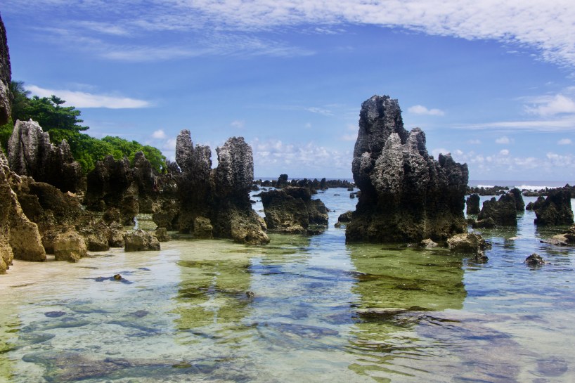 After a Nauru Airlines flight delay of 48 hours, I arrived in Nauru; an island nation that used to be one of the world’s richest per capita, but is unfortunately now one of the poorest. This change was due to over-exploitation of massive phosphate deposits by foreign countries and later Nauru itself. The removal of the phosphate left a lot of coral pinnacle formations. It only takes about three hours to hike around the entire country; four if it’s really hot and you stop for the occasional beer or dip in the ocean.