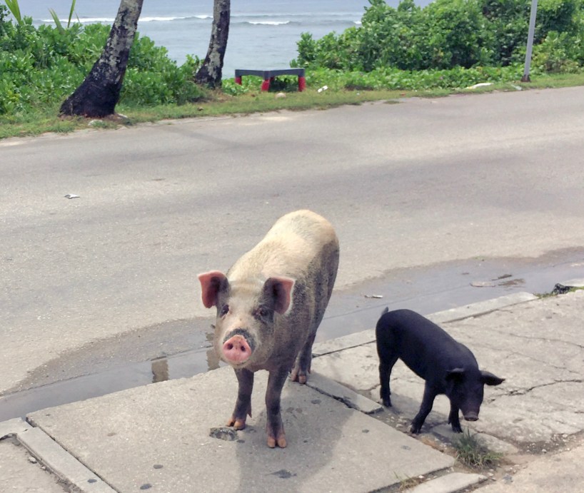 Next up was Kiribati; one of the world’s smallest countries by landmass, yet one of the largest by sea territory. I visited two islands; Tarawa and Abaiang. South Tarawa was full of small villages and towns, busy, and easy to get around in by mini bus. One of the main Tarawa attractions is the World War II battle site and its Japanese coastal guns and bunkers. Abaiang was less developed, rustic, and more laid back. I got there and back by two-hour boat ride, but there is a occasional plane option. Both islands had lots of places to swim (high tide) and walk out to look for various critters (low tide). The Kiribati people I met were all friendly and helpful. I enjoyed both islands.