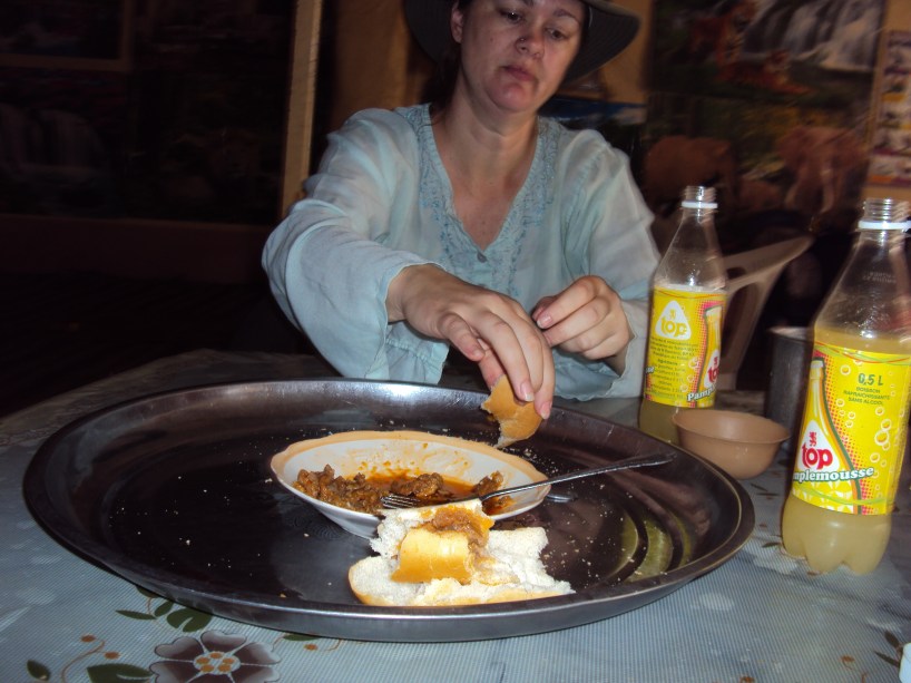 In our first month here we tried a few restaurants around town- according to the “Welcome to Ndjamena” handout we got, there are about 10 here in town- and had some pretty good food. Restaurant prices aren’t too bad, about $40 (or 20,000 CFA- Central African Francs) for the two of us. We tried a casual Lebanese place, a brick oven pizza place, and an upscale French restaurant- very good beef medallions with a yum sauce at that one. There is also a couple of Chinese restaurants, a couple of Chadian places, and I think another Lebanese cafe as well.